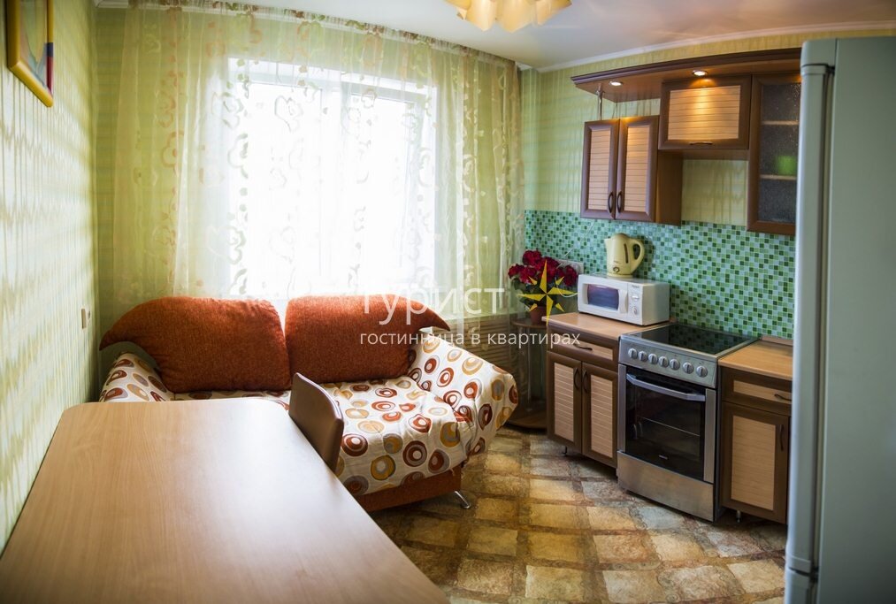 В такой квартире вы отдохнете после рабочего дня или активной экскурсии по городу на удобной кровати, посмотрите любимые передачи на большом плазменном мониторе, разложите свой багаж на полках платяного шкафа или немного поработаете на мягкой кожаной софе, подключившись к бесплатному Wi-Fi.
