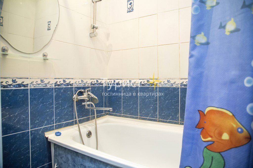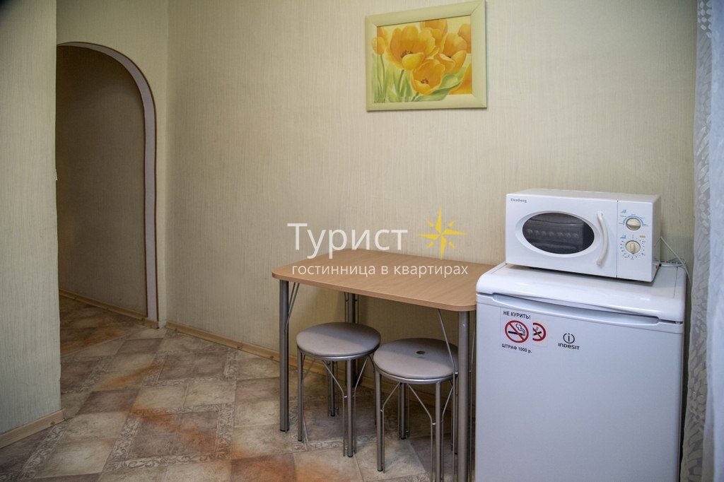 Интерьер апартаментов выполнен просто и со вкусом – преобладающая гамма пастельных тонов, элементы древесины и полукруглые арки создают атмосферу уюта, домашнего очага и непринужденности. В основной комнате в наличии светлый удобный диван, который также служит спальным местом, кофейный столик, тумба с жидкокристаллическим телевизором. Кухонный гарнитур насчитывает и бытовые электроприборы, как микроволновка и холодильник, а также все столовые принадлежности для приготовления пищи и самой трапезы. Санузел раздельный, оснащен новой сантехникой и многофункциональной стиральной машиной.