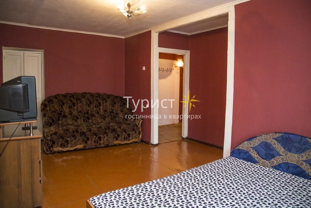 Уютные и светлые апартаменты в Кировском районе имеют всего одну комнату, в которой разместятся с удобствами четыре человека.